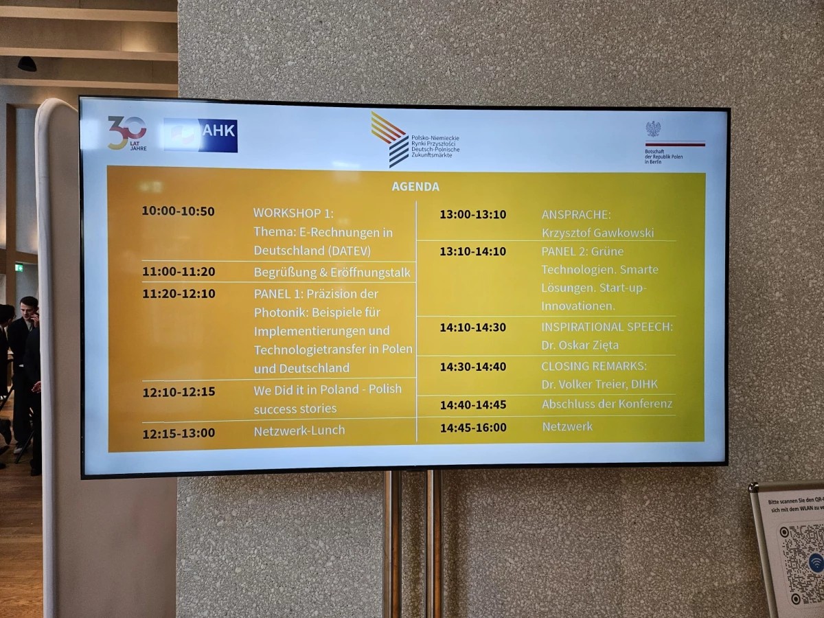 Am 27. November 2025 nahm Firmenkoop an einer wichtigen Wirtschaftsveranstaltung in der Botschaft der Republik Polen in Berlin teil. Die Konferenz „Deutsch-Polnische Zukunftsmärkte” brachte Unternehmer, Wissenschaftler und Experten aus Polen und Deutschland zusammen, die ihr Wissen über neue Technologien und wirtschaftliche Entwicklungstrends austauschten.